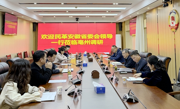 2025年11月3日至5日,民革安徽省委会副主委檀结庆率省委会调研组,赴亳州、淮北开展“履职能力建设年”暨组织建设工作调研。民革安徽省委会秘书长汪炳俊参加调研。民革亳州市委会主委王时银、民革淮北市委会主委朱先明分别在当地参加调研。