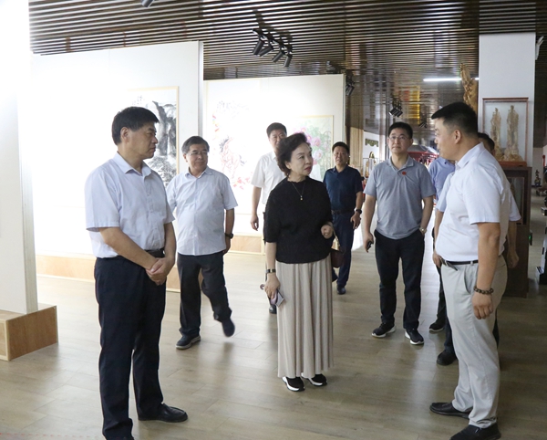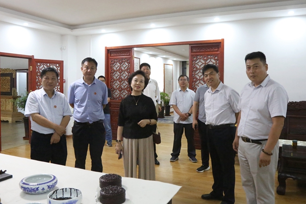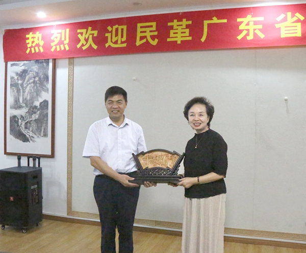 在合肥大宏木雕工艺品有限公司,马传喜、程萍等参观坐落在公司里的安徽民革书画艺术院和民革安徽省直工委党员之家,听取民革安徽省文化和旅游总支主委、安徽民革书画艺术院副院长、公司负责人刘丹关于书画艺术院、党员之家的情况汇报。两地省委会领导就民革组织自身建设、履行职能及书画艺术工作、党员之家建设、机关工作等进行座谈交流。马传喜、程萍一致表示,要加强两省民革组织的沟通交流,相互学习借鉴好的经验做法,推动两省民革事业进一步发展。