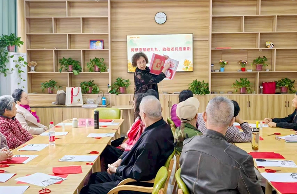 活动中,王瑾手把手传授剪纸技巧,从折纸、描线到裁剪,耐心指导老兵与工作人员完成“五角星”“寿桃”等主题作品。老兵们一边专注创作,一边分享军旅岁月里的热血故事,将对家国的热爱与对晚年生活的珍视融入指尖。(杨娑娑)