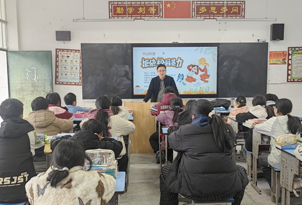 民革安徽省社会与法制支部党员、安徽中山法律援助维权中心志愿律师李惊雷以《拒绝校园暴力》为题,为该校七年级学生作法律知识讲座。他以文字、图片和视频方式,向同学们解读新修订的《中华人民共和国治安管理处罚法》,讲解校园暴力的危害性,为同学们保障自身权利提出合理建议。