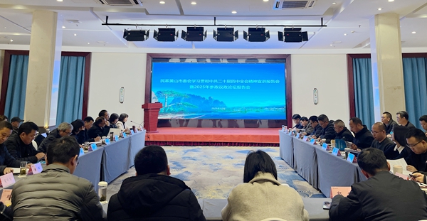 2025年12月18日,民革黄山市委会举办2025年参政议政论坛报告会。市委会主委江卓琪,副主委周丽华、叶大磊、邹兵,秘书长苏恒出席会议。
