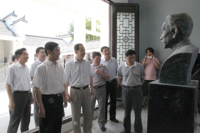 夏涛一行冒着高温酷暑,实地察看了刚刚建成的朱蕴山纪念馆和修缮后的“讲学堂”,试听了讲解,察看了馆藏文物、资料,与中共六安市委书记孙云飞、市政协主席刘庆德等领导,就朱蕴山纪念馆的建设情况进行了沟通。