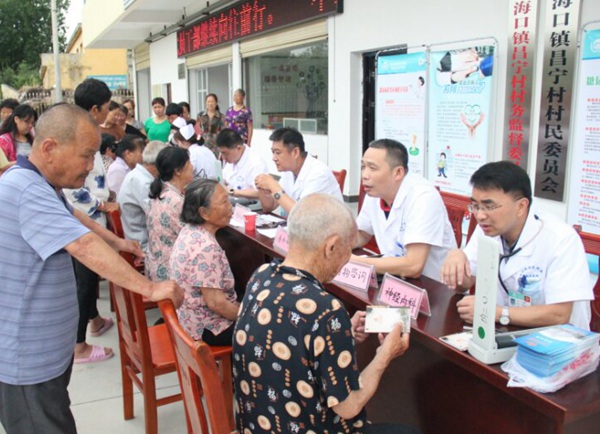 安庆市海口镇昌宁村是三峡库区移民的迁居村,这里集中居住着550余名库区移民,多数为留守老人。5月17日,第14个世界高血压日,为了让村民更好地了解高血压的危害以及预防减少心脑血管疾病的发生,民革安庆市十一支部联合南京鼓楼医院集团安庆石化医院的医疗专家赴昌宁村,上门入户提供义诊服务。
